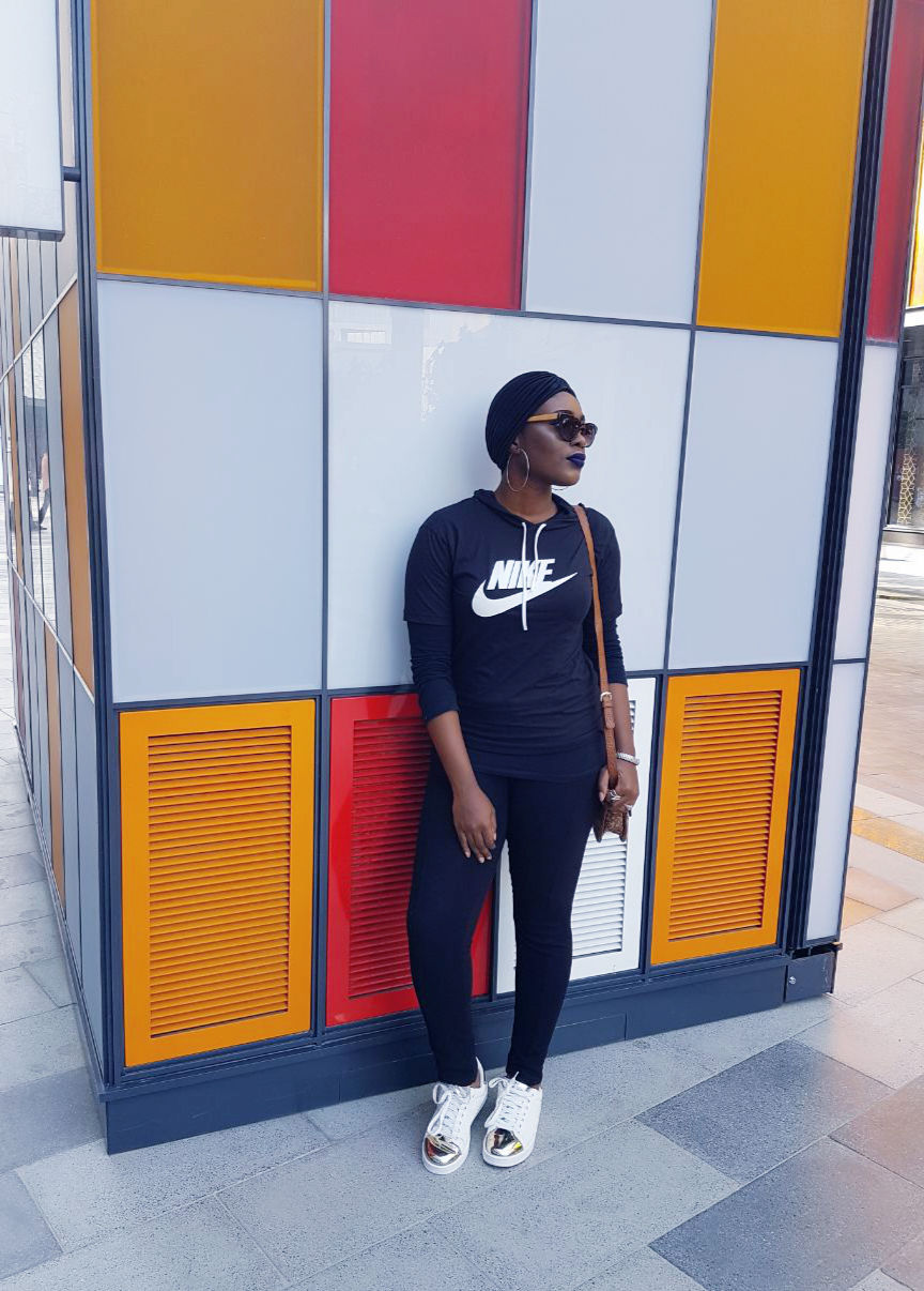 So i wanted a dark look for some reason(maybe cus black is my second favorite color). The only pop of color i decided to add was my white sneaks that i legit got at a Bazaar in Ajman.